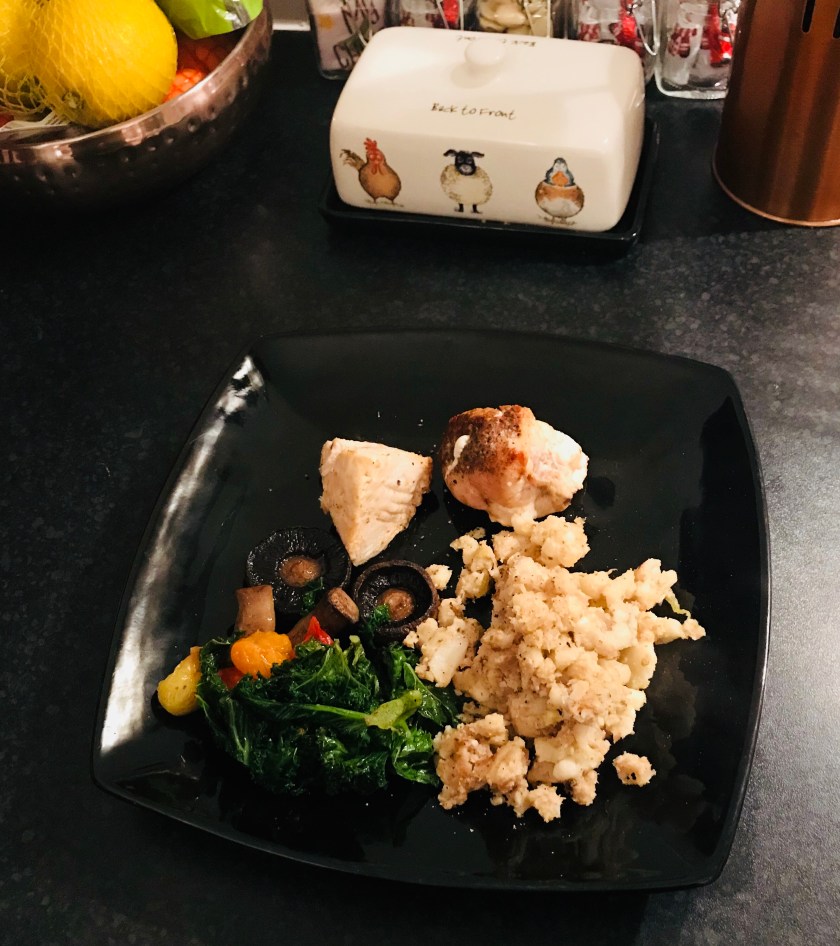 Day three saw another culinary attempt by moi. This time in the form of cauliflower rice. It turns out cauliflower doesn’t really rice when using a hand blender, it was more cauliflower balls but still, I seasoned it well.